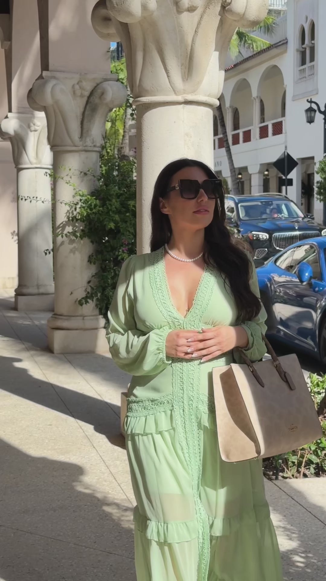 Graceful and timeless, The Linden Estate Dress evokes the elegance of English garden soirées and heritage charm. Crafted from flowing chiffon in a delicate light green, this gown features a deep V-neckline framed by embroidered detailing, ruffled sides, and a soft princess silhouette. The knee-high split adds a touch of modern allure while maintaining its sophisticated appeal.